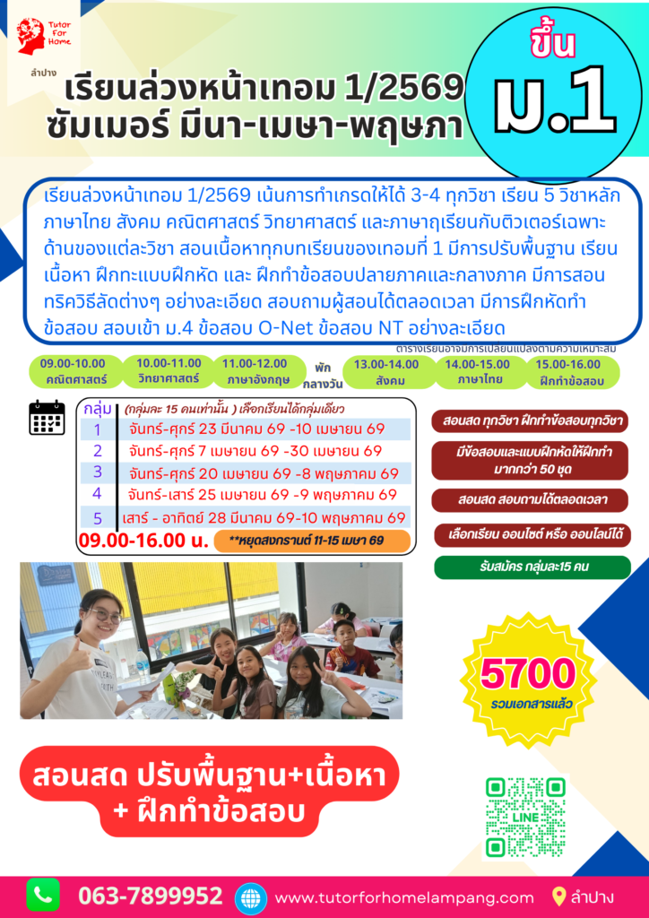 ติดต่อเรียน โทร 063-7899952 เรียนพิเศษลำปาง กวดวิชาลำปาง รับรองผลการเรียน เรียนได้เลยวันนี้