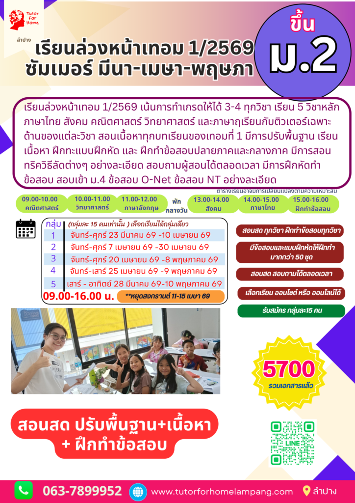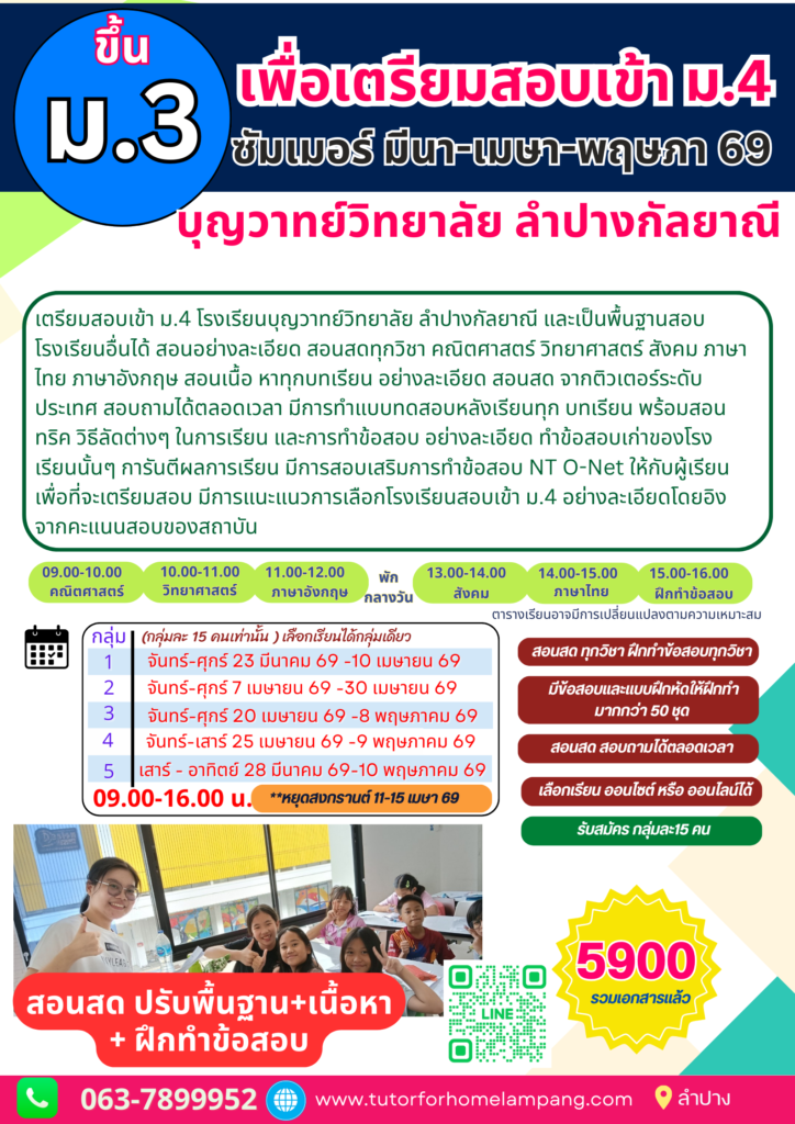 คอร์สเรียนพิเศษซัมเมอร์ มีนาคม เมษายน พฤษภาคม ลำปาง 2569